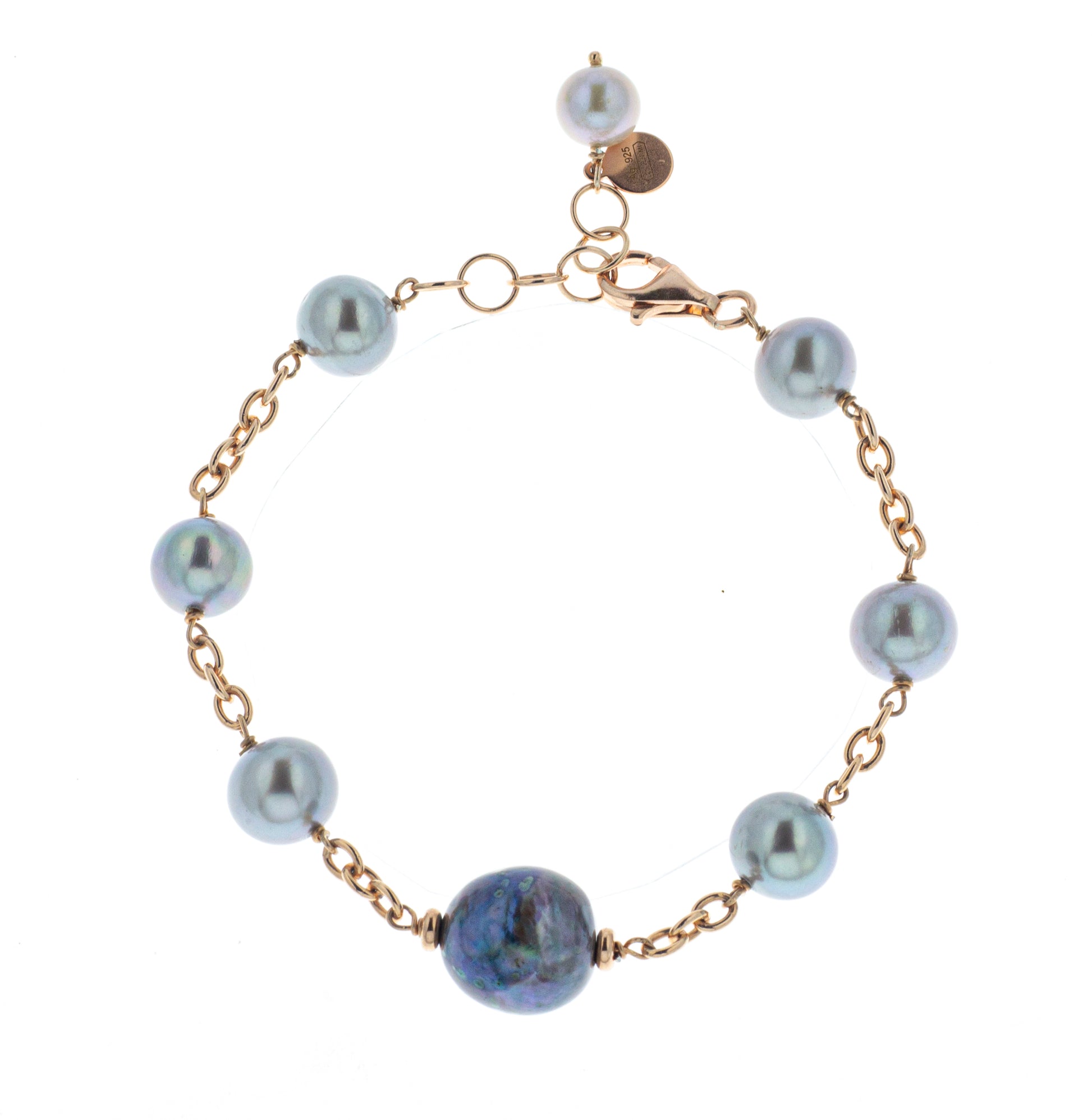 Braccialetto argento 925/ooo placcato oro rosè, perle coltivate