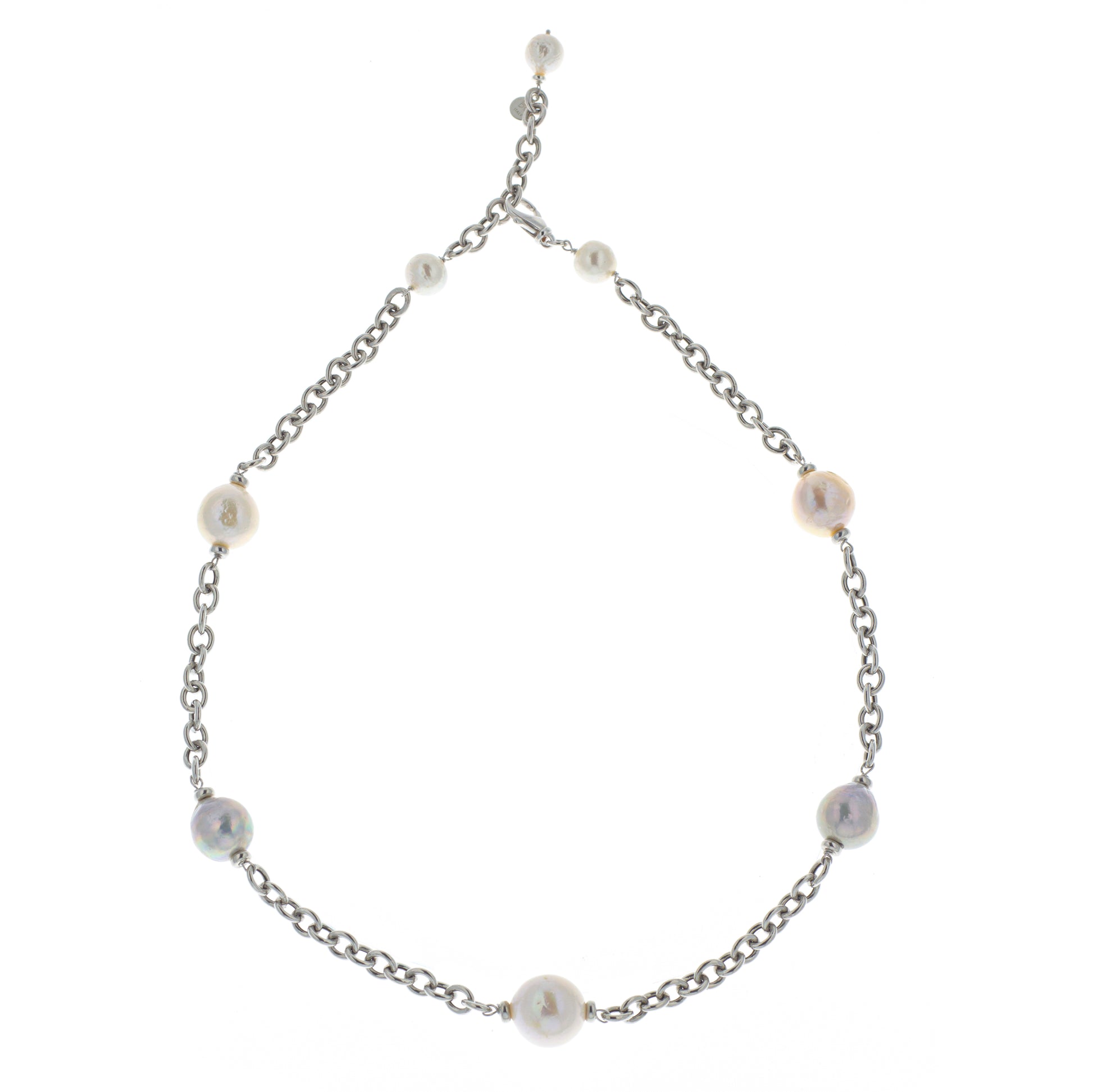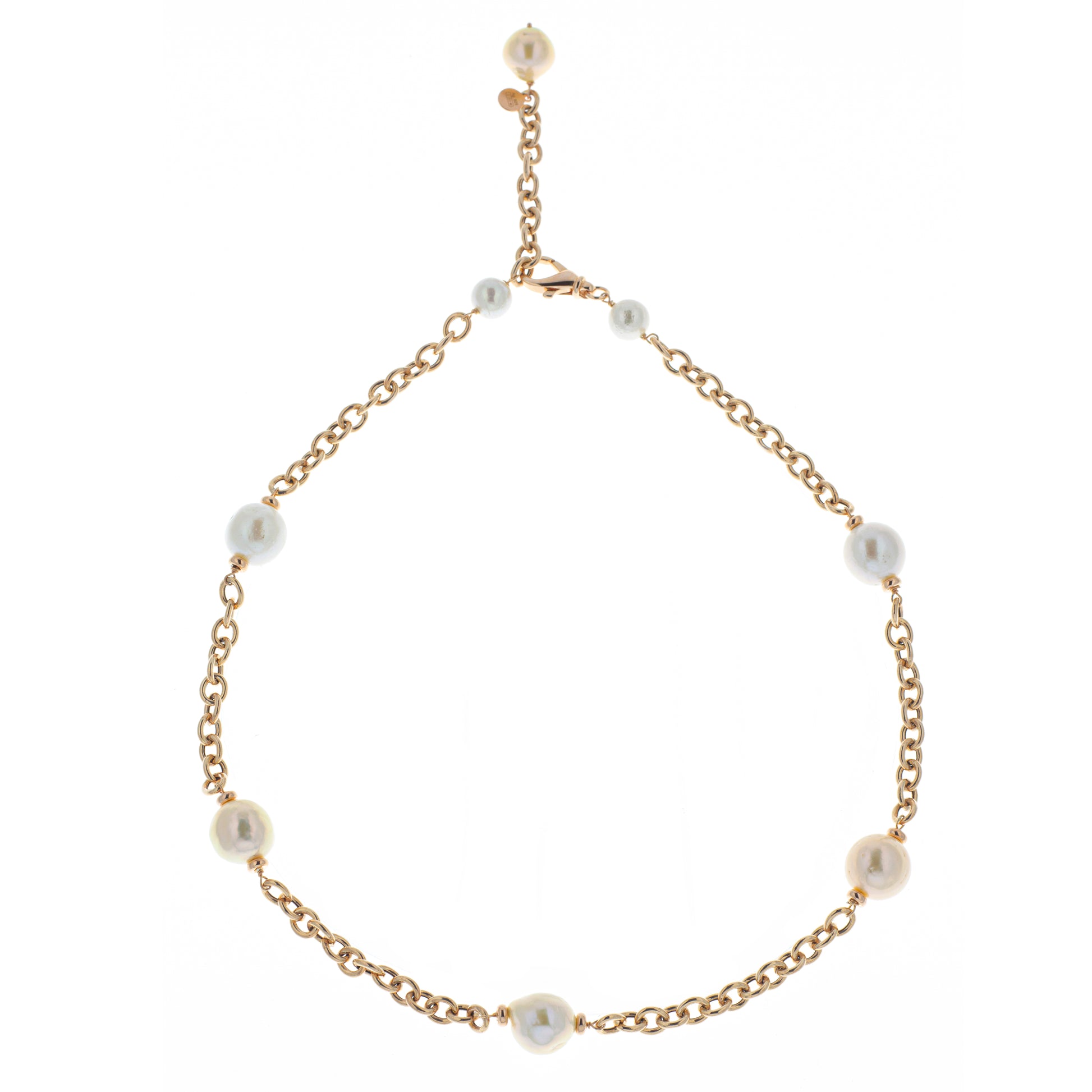 Collana girocollo argento 925/ooo placcato oro rosè, perle coltivate