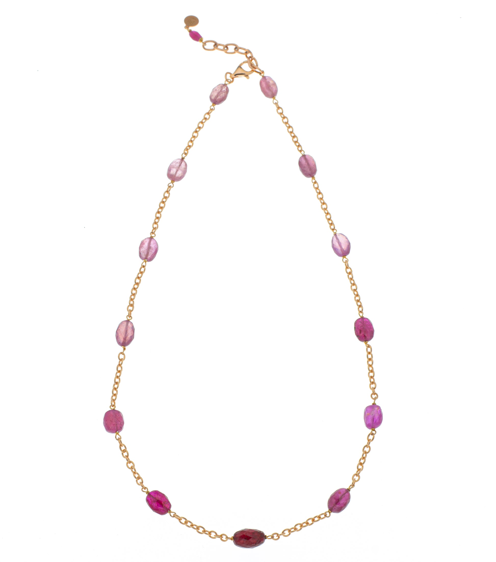 Collana girocollo argento 925/ooo placcato oro rosè, Zaffiri multi colore
